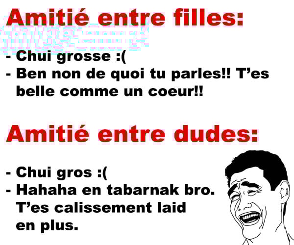 Amitié entre filles VS Amitié entre dudes ConneriesQc 22 janvier 2016 Facebook Précédent Suivant Facebook Précédent Suivant
