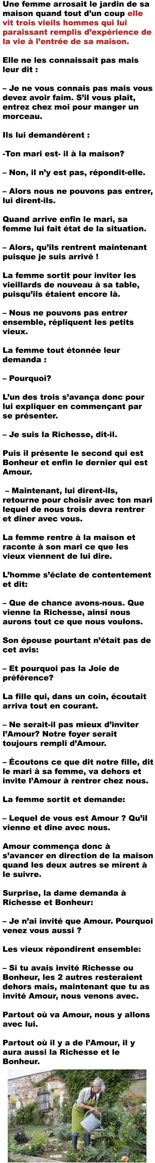 La dame qui arrosait son jardin et qui vit soudainement 3 hommes âgés s’approcher d’elle