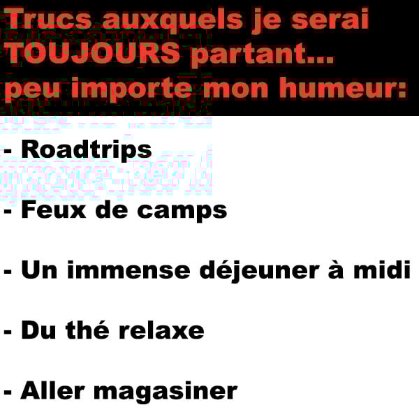 Je serai toujours partant pour ça ConneriesQc 9 août 2016 Facebook Précédent Suivant Facebook Précédent Suivant