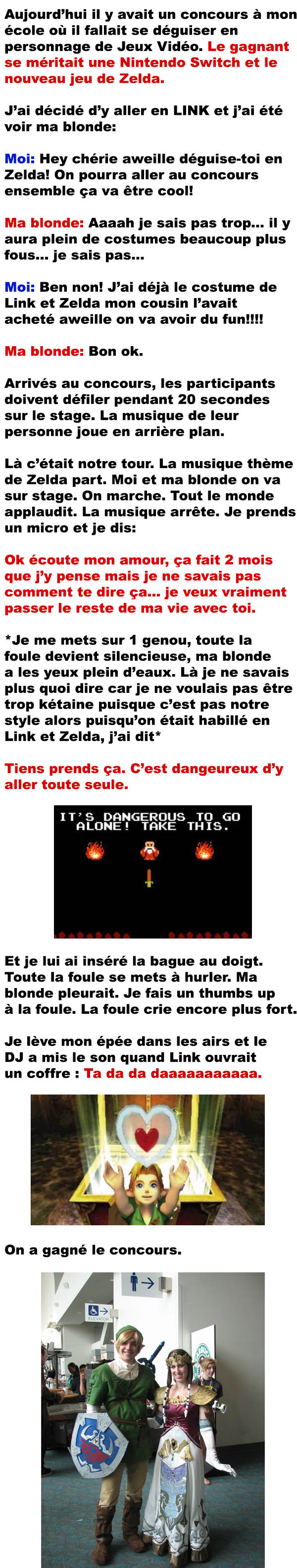 Demande en Mariage en Link et Zelda ConneriesQc 16 mars 2017 Facebook Précédent Suivant Mis à jour le 16 mars 2017 12:04 pm Facebook Précédent Suivant