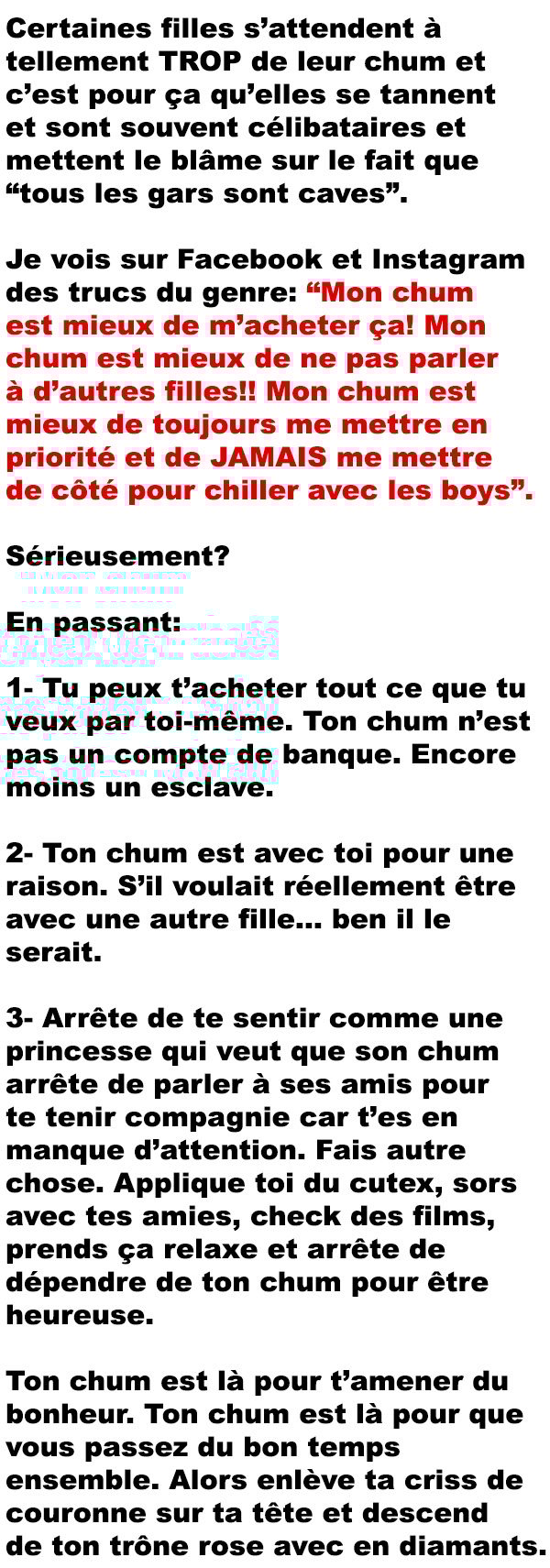 Pour les filles qui dépendent de leur chum pour être heureuses