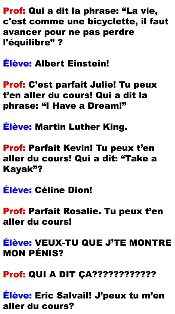 Interrogatoire comique dans une classe ConneriesQc 18 octobre 2017 Facebook Précédent Suivant Mis à jour le 18 octobre 2017 11:06 am Facebook Précédent Suivant