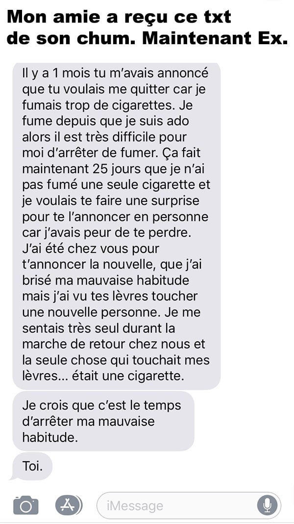 Mon amie a reçu ce txt de son chum. Maintenant Ex. ConneriesQc 6 juin 2018 Facebook Précédent Suivant Mis à jour le 1 mars 2024 9:52 am Facebook Précédent Suivant