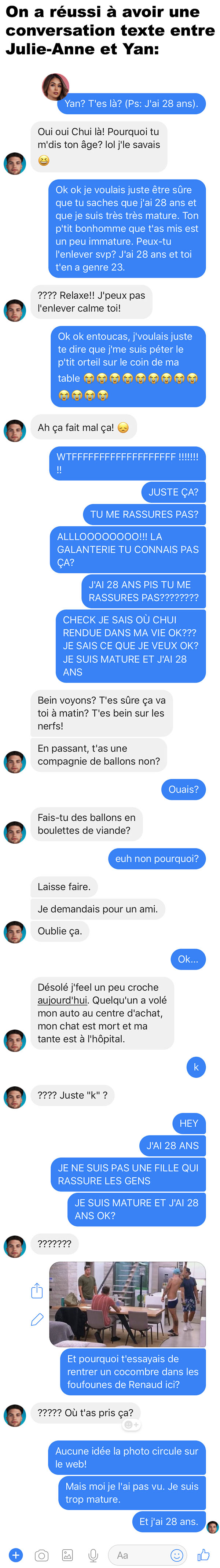 Une conversation texte entre Julie-Anne et Yan ConneriesQc 29 novembre 2018 Facebook Précédent Suivant Mis à jour le 29 novembre 2018 10:15 am Facebook Précédent Suivant