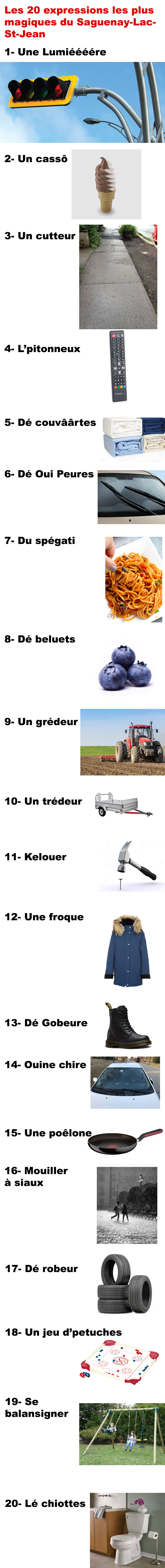 Les 20 expressions les plus magiques du Saguenay-Lac-St-Jean ConneriesQc 21 janvier 2019 Facebook Précédent Suivant Mis à jour le 9 avril 2021 1:52 pm Facebook Précédent Suivant