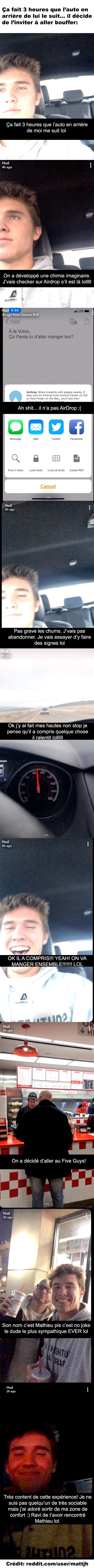 Il se fait suivre pendant 3 heures par une auto et décide d’inviter le gars à aller bouffer ConneriesQc 4 mars 2019 Facebook Précédent Suivant Mis à jour le 4 mars 2019 10:23 am Facebook Précédent Suivant