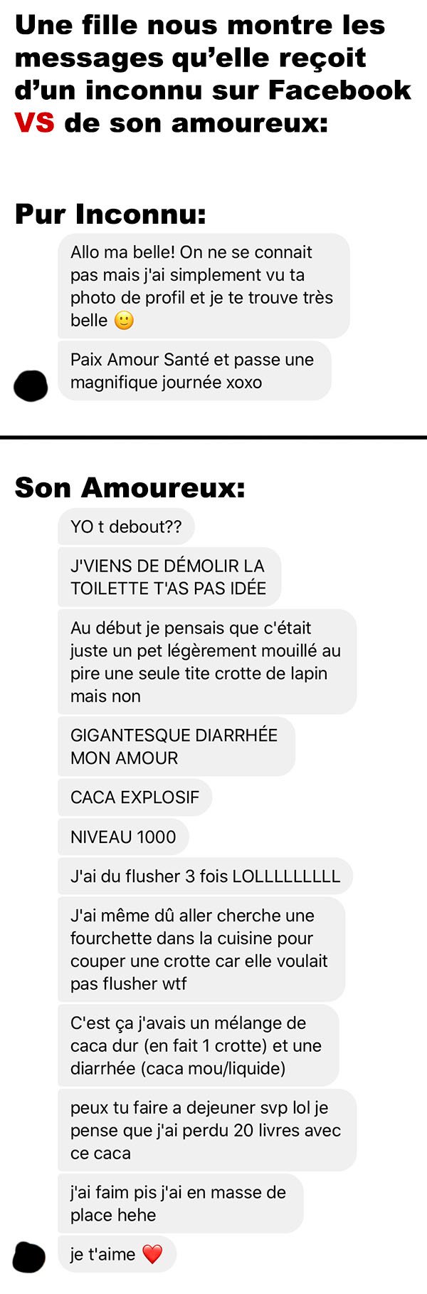 Une fille nous montre les messages qu’elle reçoit d’un inconnu sur Facebook VS de son amoureux