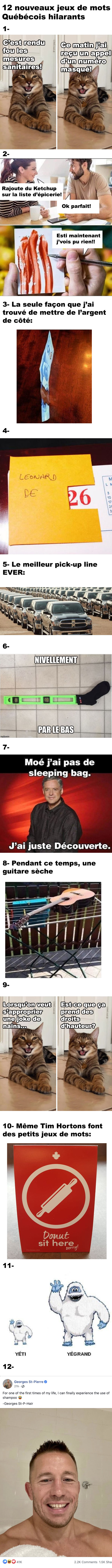 12 nouveaux jeux de mots Québécois hilarants ConneriesQc 7 septembre 2020 Facebook Précédent Suivant Mis à jour le 3 février 2021 1:53 pm Facebook Précédent Suivant Tags:Jeux de Mots
