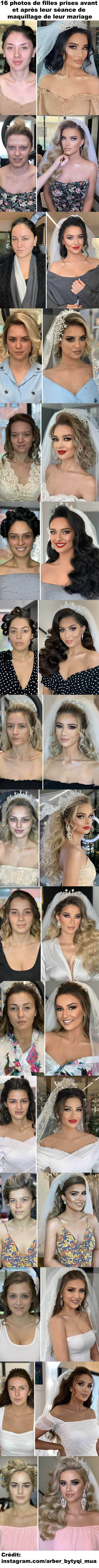 16 photos de filles prises avant et après leur séance de maquillage de leur mariage