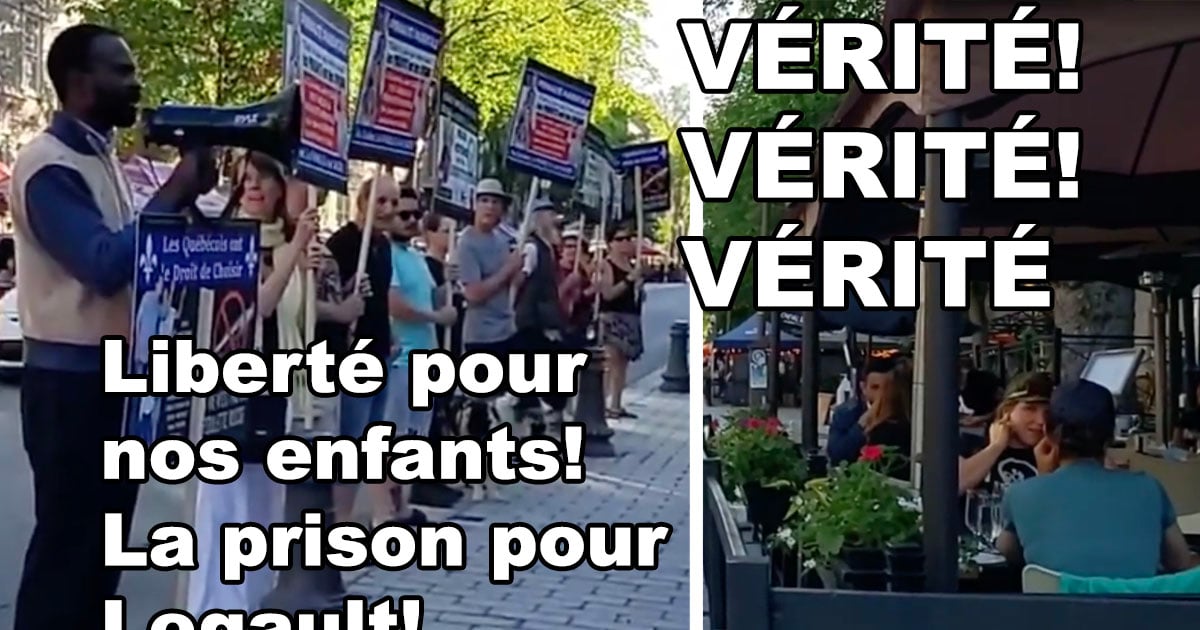 Des conspirationistes hurlent dans un porte-voix auprès des gens qui relaxent sur une terrasse