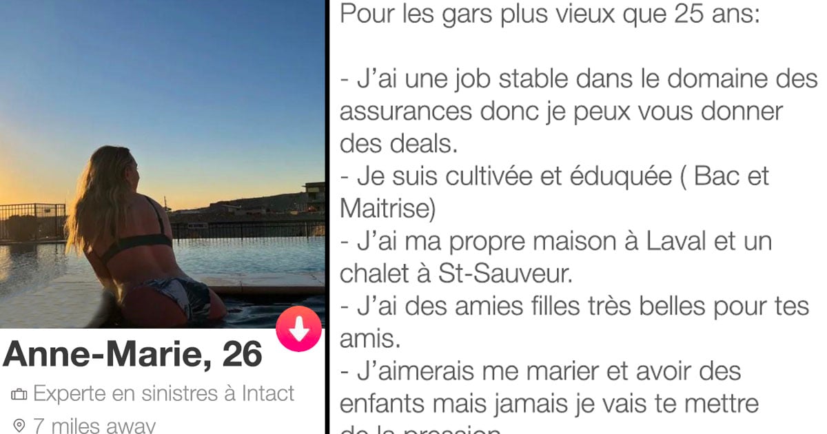 Une fille sur Tinder a une bio différente pour les gars plus jeunes ET plus vieux que 25 ans