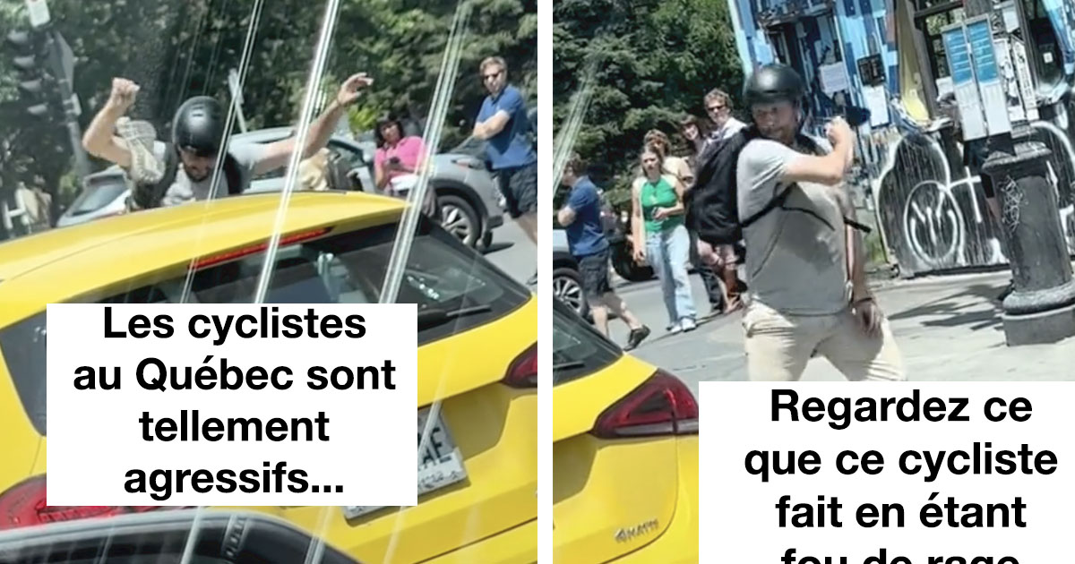 Voici @saabaaby sur TikTok. Cette fille a publié une vidéo où l’on voit un cycliste péter sa coche. Il descend de sa bicyclette et démolit entièrement le miroir d’une auto. Le conducteur reste dans son auto et garde son calme. Voici la vidéo: