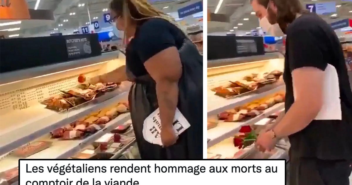 Voici une vidéo publiée par @RadioGenova sur Twitter. On y voit des personnes vegans entrer dans une épicerie, avec une musique très triste, déposer des roses sur les viandes emballées pour « Rendre hommage aux disparus ». Vous pouvez également lire les commentaires juste après… cette vidéo a suscité énormément de réactions: