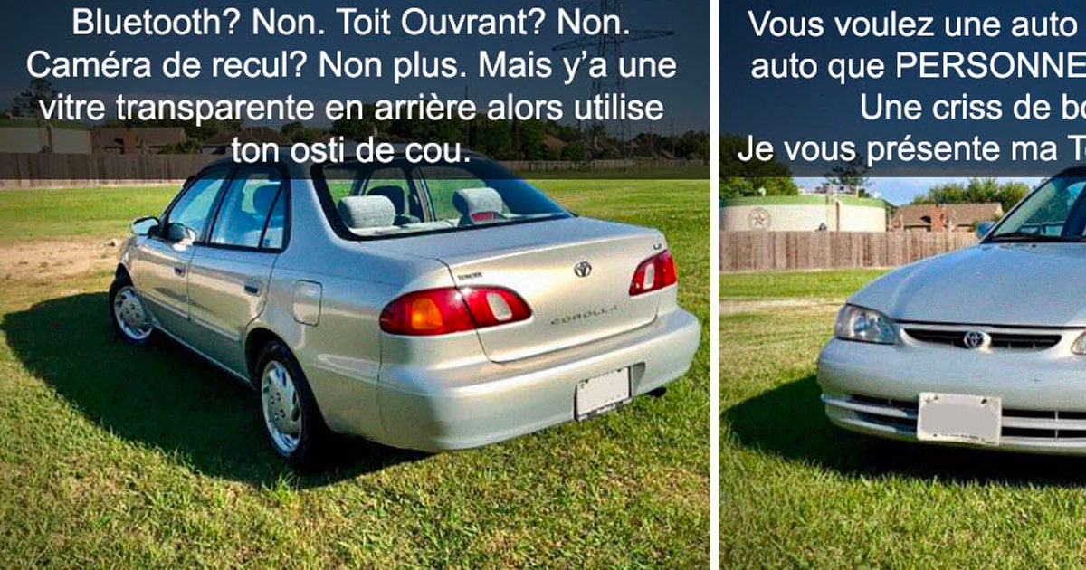 Un homme vend sa vieille Toyota Corolla 1999 d’une façon hilarante