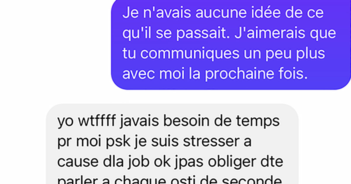 Une fille de 19 ans expose la conversation qui a mené à la rupture amoureuse avec son chum de 37 ans