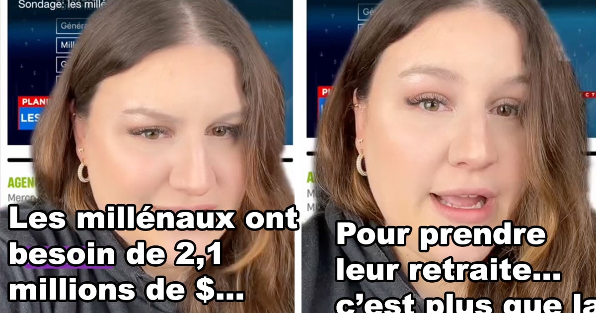 Voici @adultesresponsables sur TikTok. Cette experte en finances se base sur un article publié par le Journal de Montréal pour dire que les milléniaux auraient de besoin de 2.1 millions de $… pour prendre leur retraite…