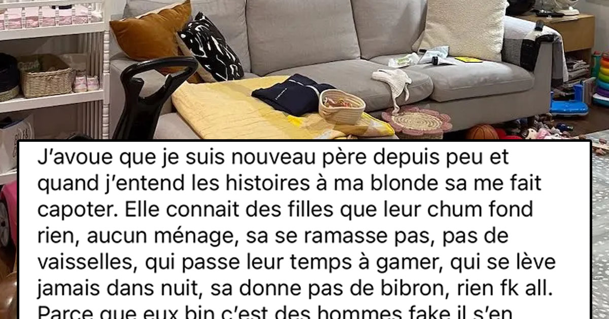 J’avoue que je suis nouveau père depuis peu et quand j’entend les histoires à ma blonde sa me fait capoter. Elle connait des filles que leur chum fond rien, aucun ménage, sa se ramasse pas, pas de vaisselles, qui passe leur temps à gamer, qui se lève jamais dans nuit, sa donne pas de bibron, rien fk all. Parce que eux bin c’est des hommes fake il s’en occupe pas. Hey tbk on est 2024 lachez vos manière d’homme des caverne. Pour m’en occuper autant qu’elle et même si oui les gars je travail 40h je peu dire que ça aucun sens de leur laisser tout cette responsabilité la sur les épaules, gang de mous pas d’colone, prenez vos responsabilités, pas moins homme parce que tu t’occupe de ton enfant. Tu voulait pas mettre de condom, tu voulait donc être père bin maintenant assume !