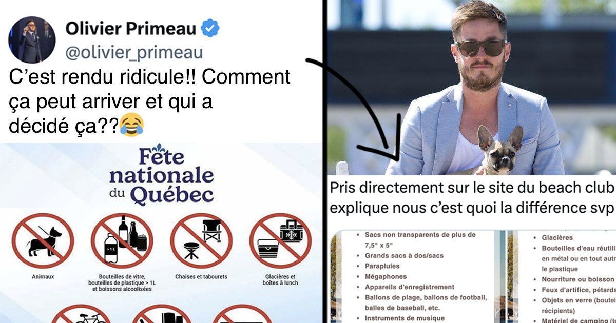 Cependant, la situation a pris une tournure ironique lorsqu’un internaute, Felipe, a décidé de vérifier les règlements du propre établissement de Primeau. En partageant une capture d’écran des règles du Beach Club, dont Primeau est propriétaire, Felipe a révélé que l’établissement impose des restrictions encore plus strictes que celles critiquées pour la Fête nationale.