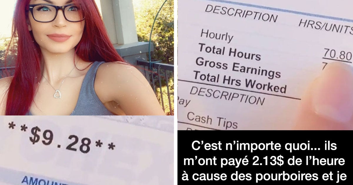 Elle y explique avoir travaillé près de 71 heures en deux semaines pour finalement recevoir un chèque de paie de seulement 9,28 $. Un montant dérisoire qui provoque l’indignation et rappelle à quel point les pourboires représentent plus qu’un simple « extra » pour ceux qui travaillent dans l’industrie du service.