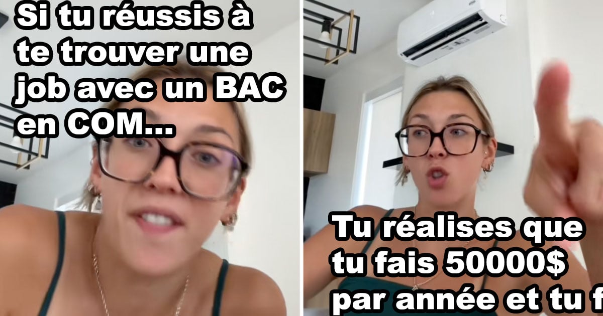 Selon elle, un baccalauréat en communication publique n’ouvre pas les portes qu’on promet aux étudiants et ne vaut pas toujours l’investissement de temps, d’énergie et surtout d’argent qu’il demande. (via PetitPetitGamin)