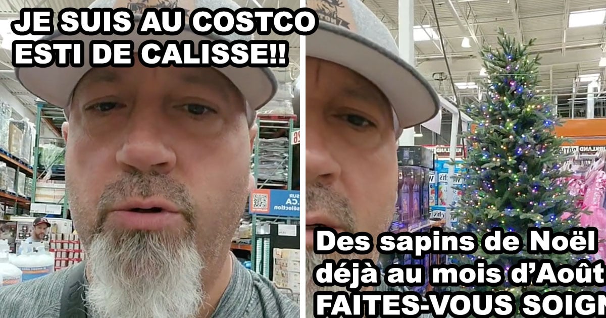 Dans une courte vidéo filmée à l’intérieur d’un Costco, il partage sa stupéfaction – et surtout sa colère – devant une scène qui lui paraît complètement absurde : au beau milieu du mois d’août, des sapins de Noël et décorations festives sont déjà exposés dans les allées du magasin. (via PetitPetitGamin)