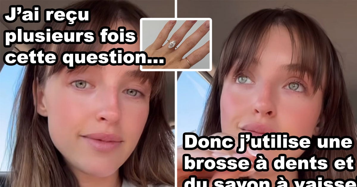 Dans une story partagée sur Instagram, Alicia explique sa routine toute simple pour faire briller son précieux bijou. Une méthode qui peut surprendre : elle utilise tout simplement du savon à vaisselle et une brosse à dents. « Je la trempe dans l’eau chaude, je la brosse avec du savon à vaisselle, puis elle devient full shiny. Le secret, c’est de bien nettoyer en dessous », confie-t-elle. La jeune animatrice insiste sur le fait que la saleté, souvent accumulée sous la bague, est la principale cause du manque d’éclat.