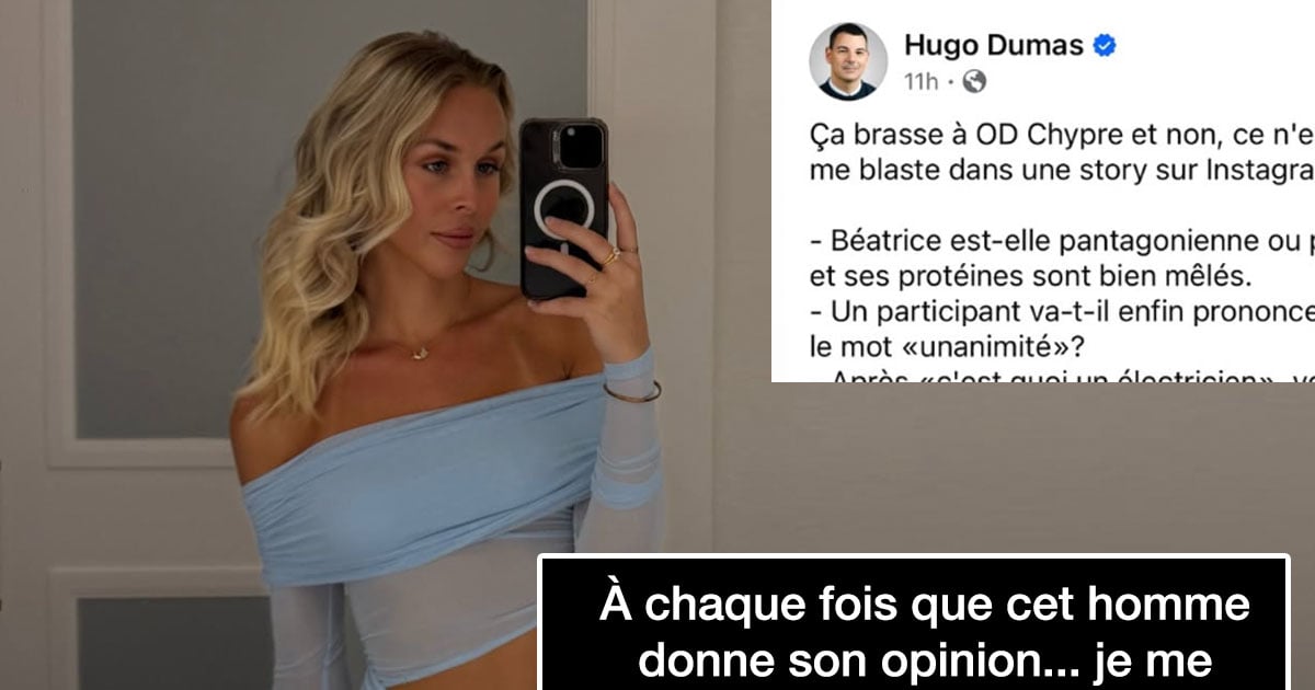 Hugo Dumas, connu pour ses résumés hebdomadaires sans détour, avait publié une liste de réflexions cinglantes sur les candidats et animatrices d’OD Chypre, ce qui n’a pas manqué d’attirer la colère de plusieurs participants. Ses commentaires ont fini par agacer Ally, qui y voit un manque de bienveillance et d’humour volontairement mordant.
