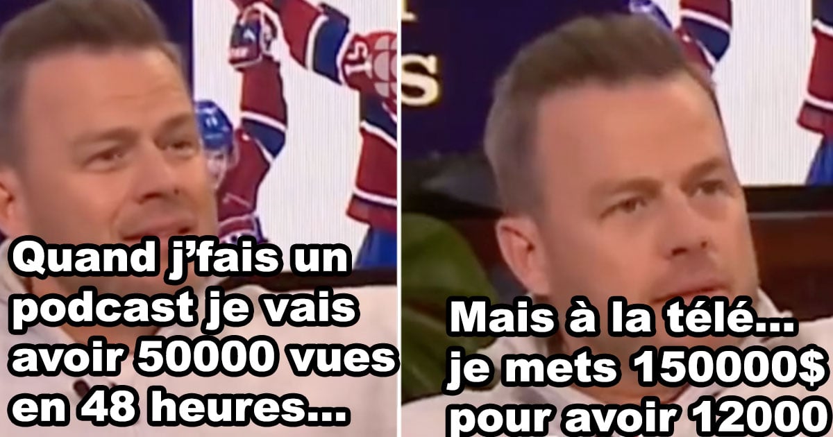 Avec son franc-parler habituel, il a comparé le succès d’un podcast qu’il fait dans un cadre décontracté, avec casquette et hoodie, à celui d’une émission télévisée pour laquelle ont été investis pas moins de 150 000 $.