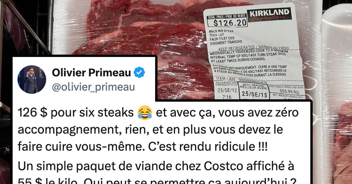 Olivier Primeau n’a pas mâché ses mots en dénonçant sur Twitter le prix foudroyant de la viande dans les supermarchés, et particulièrement au Costco.