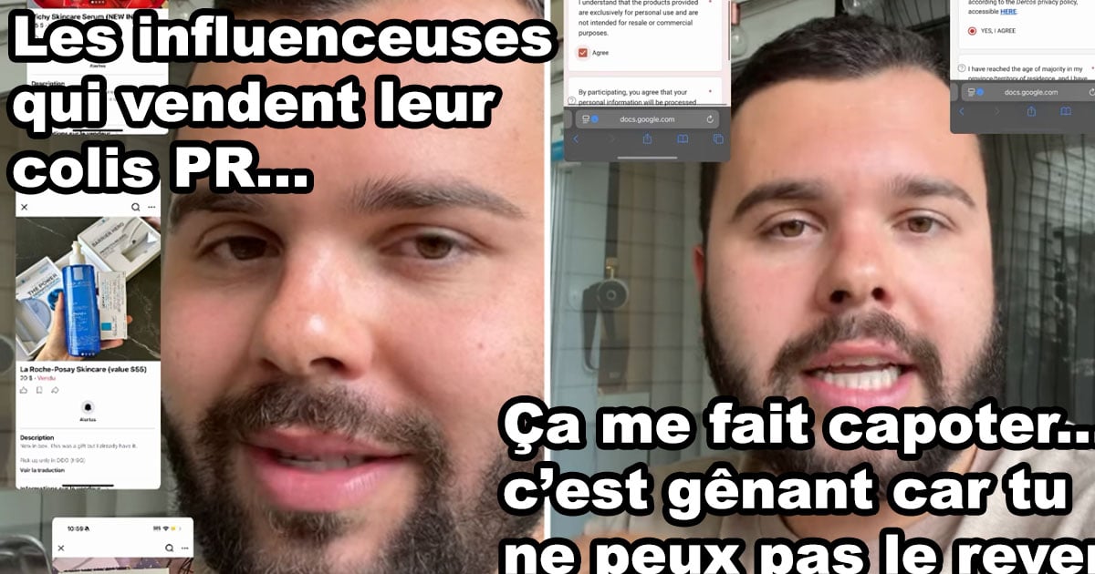 Brendan ne mâche pas ses mots pour montrer à quel point il est choqué par cette tendance : « Le pire, c’est que la fille, elle met ça sur Marketplace, puis il y en a plein, plein. Quand je dis plein, il y en a plein. […] Tu sais que c’est un colis PR parce que moi, il y a même des colis là-dedans que j’ai moi-même reçus. »