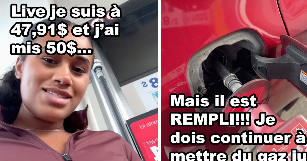 Elle est en train de faire son plein d’essence… et elle a partagé avec son public une vraie préoccupation : « Quand je remplis mon char, je fasse 47,91$, puis j’ai mis 50 pièces. Là, moi, ce que je fais, c’est que quand ça commence à mousser, j’arrête parce qu’il est rempli… mais mettons, je peux-tu revendre mon cash ? Je peux-tu revendre ma piasse et demi ? » (via PetitPetitGamin)