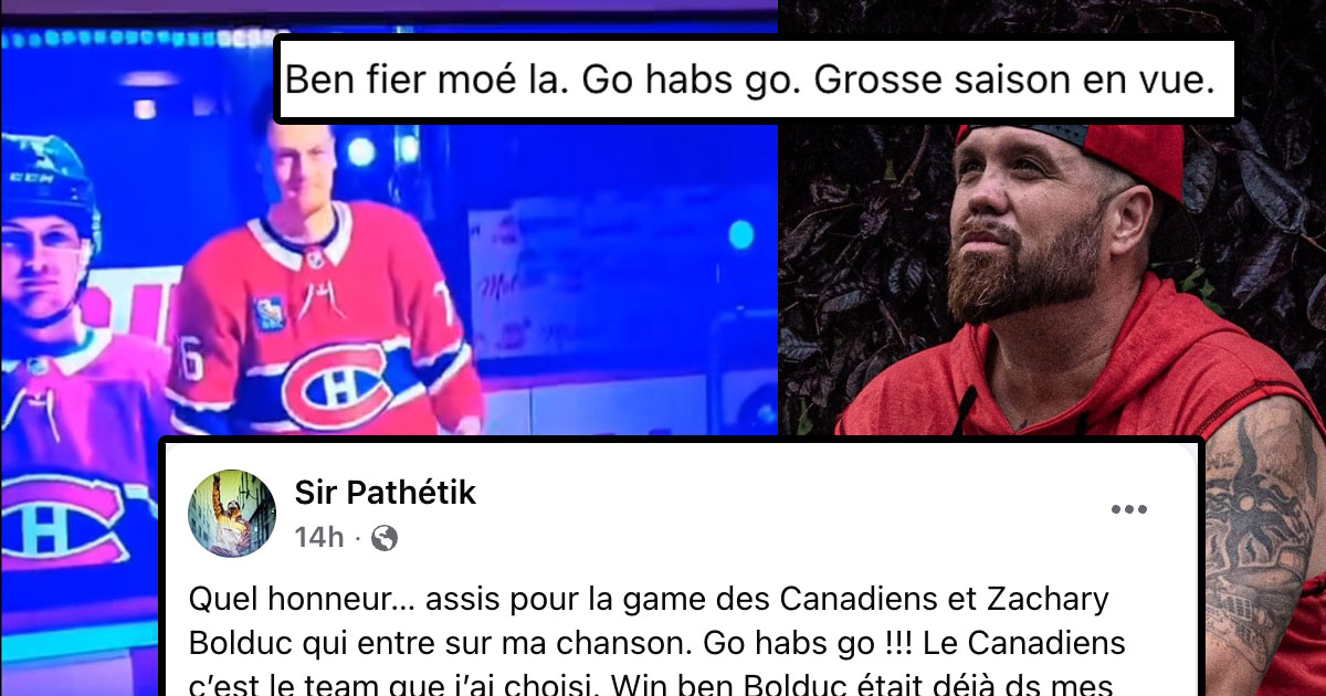 Le rappeur originaire de Trois-Rivières a été transporté d’émotion lorsqu’il a appris que Zachary Bolduc, nouvel attaquant des Canadiens de Montréal, avait sélectionné sa chanson « Pour mon pays » pour son entrée sur la glace du Centre Bell. Sur ses réseaux sociaux, Sir Pathétik a partagé sa joie immense, exprimant sa fierté de voir son œuvre et son attachement à l’équipe locale porter haut les couleurs du Québec devant des milliers de partisans. via PetitPetitGamin