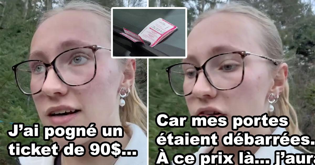 « J’ai pogné un ticket de 90 $ parce que mes portes d’auto étaient débarrées. À ce prix-là, j’aurais préféré rouler plus vite dans une zone scolaire ! », lance-t-elle, résumant avec ironie son exaspération. Selon elle, même les objets de valeur qu’un voleur aurait pu subtiliser dans son véhicule ne justifient pas une telle pénalité : « Peu importe ce qu’on m’aurait volé, ça n’aurait jamais valu 90 $. C’est littéralement du vol. » (via PetitPetitGamin)