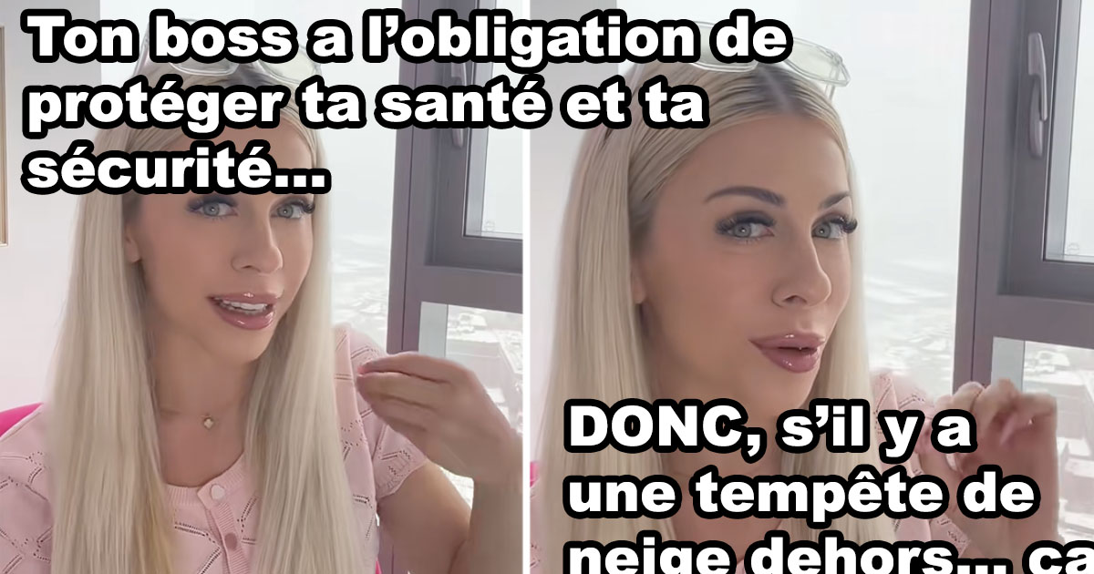 Comme l’explique @lynchlegal sur TikTok, même si votre travail peut être effectué à distance, l’employeur conserve en principe le droit d’exiger que vous vous présentiez sur place. Toutefois, ce droit a ses limites : l’employeur est tenu de protéger la santé et la sécurité de ses employés et doit donc faire preuve de diligence lorsque les conditions météo deviennent dangereuses.