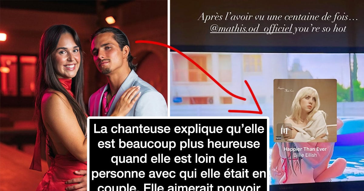 Mais le coup de théâtre s’est produit lorsque Mathis lui-même a enfoncé le clou en repartageant la story de Cindy, cette fois en superposant la chanson « Happier Than Ever » de Billie Eilish. Le sens est limpide : les paroles évoquent la libération d’un amour conflictuel, le refus de la douleur, l’envie de tourner la page – « When I’m away from you, I’m happier than ever… I wish it wasn’t true ». Pour les fans avertis, il s’agit d’un message direct adressé à Laurie, explicitant sans détour sa volonté de passer à autre chose : l’épisode douloureux de leur brève romance appartient au passé.