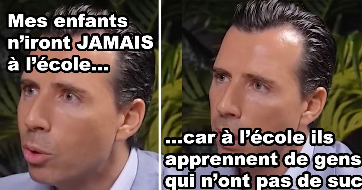 Dans une vidéo et un post qui cartonnent, il dénonce un système obsolète qui forme des « robots médiocres » incapables de réussir dans la vraie vie. « Pourquoi nos enfants n’iront jamais à l’école, JAMAIS de la vie, sauf si c’est une école entrepreneur comme nous on le conçoit. » Pour lui, l’école publique enseigne 80% de choses inutiles, apprises par des profs sans succès ni bonheur. (via PetitPetitGamin)