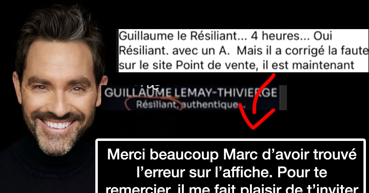 Sous la publication annonçant sa conférence « Sacré Guillaume », un internaute nommé Marc a souligné – avec un ton plutôt ironique – une faute d’orthographe dans le mot « résilient », écrit « résiliant » sur l’affiche promotionnelle. Il est même allé jusqu’à rire de « Guillaume le Résiliant » et à parler d’« une nouvelle secte », ce qui a rapidement fait réagir les réseaux sociaux.