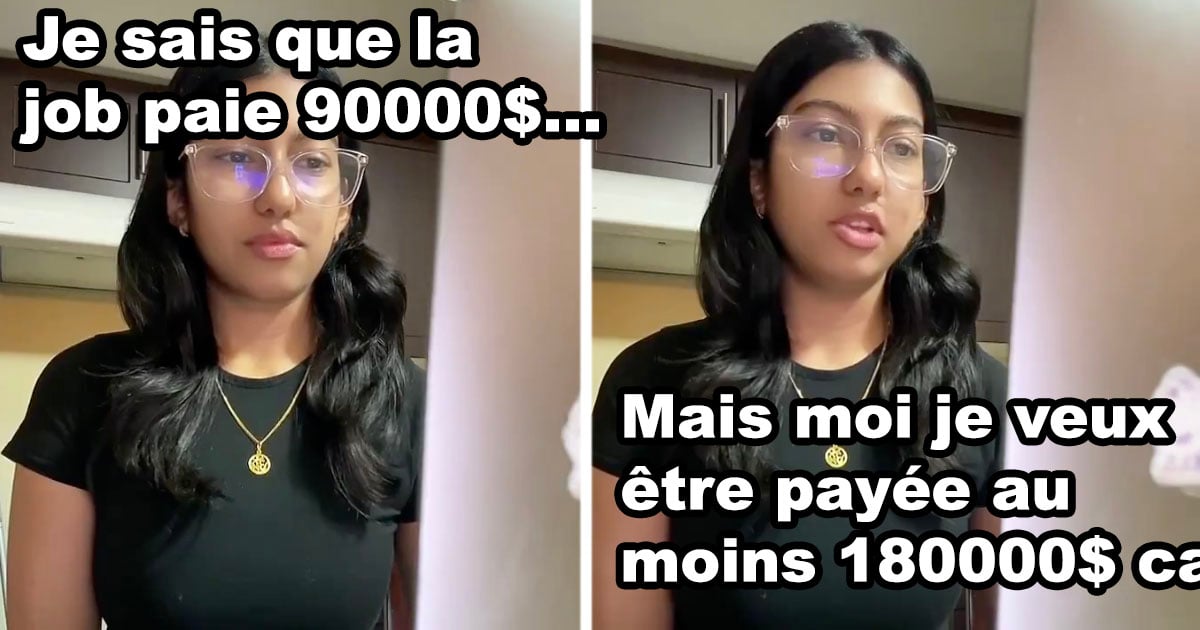Une jeune diplômée exige un salaire de 180000$ pour une job qui paie 90000$