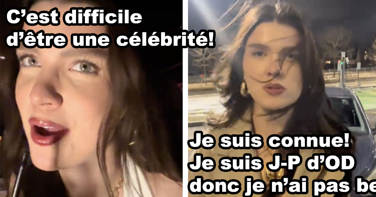 Dans cette courte capsule, l’ex-vedette du reality show joue avec les stéréotypes liés à la notoriété post-Occupation Double. Elle y incarne la fille persuadée d’être reconnue partout, qui s’attend à manger gratuitement ou à être servie avant tout le monde simplement parce qu’elle a été vue à la télé.
