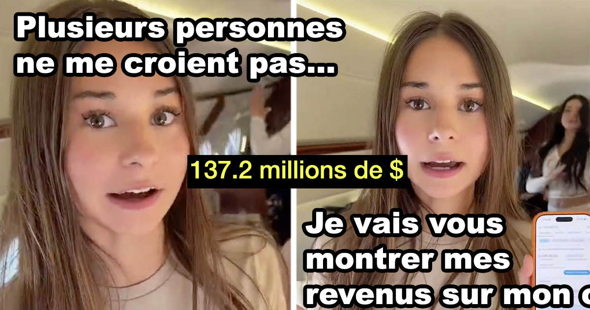 À bord d’un jet privé, cette influenceuse qui se dit vierge a publié une vidéo virale le 26 janvier 2026, où elle exhibe son tableau de bord OnlyFans. Les captures d’écran révèlent un total dépassant les 100 millions $US, soit plus de 136 millions $CAD au taux actuel de 1,36 $CAD par $US.