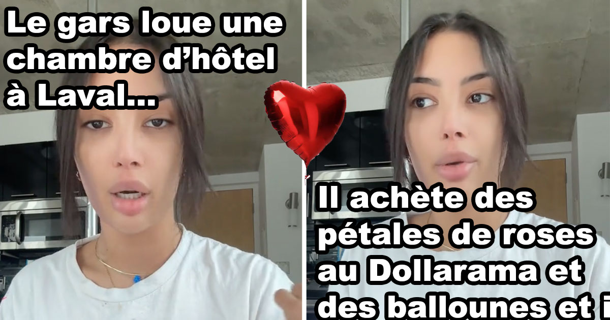 Dans sa tirade, @lilivalency imagine le pire scénario pour une soirée de Saint-Valentin : une chambre de motel à Laval louée pour 100 $. « Imagine que ton cadeau de Saint-Valentin, c’est une chambre de motel à Laval que ton chum il a loué pour 100 $. »