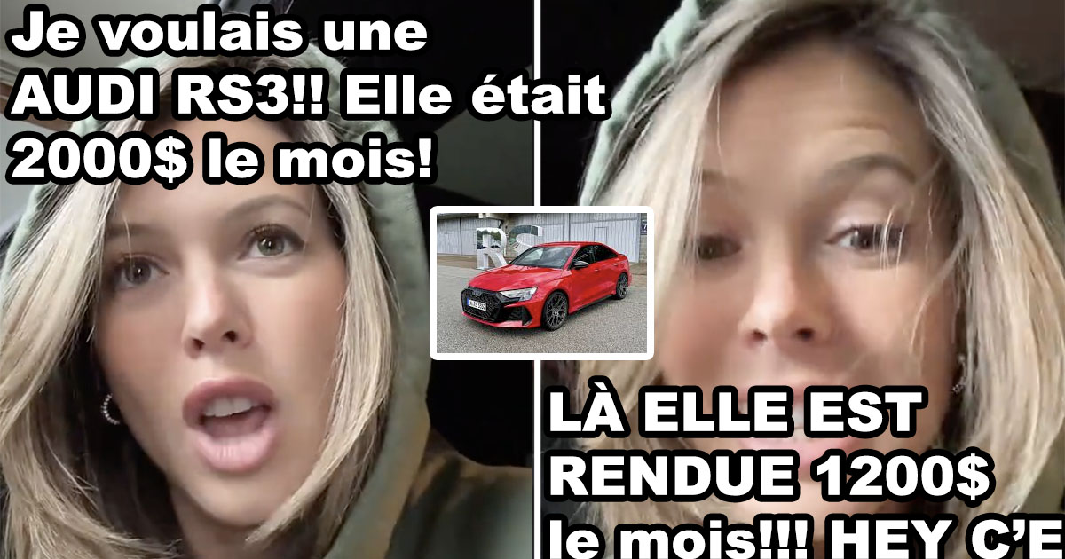 Dans son histoire, elle remet le contexte sans détour: en novembre 2025, elle a loué sa BMW, après avoir magasiné longtemps, intensément, comme quelqu’un qui veut être sûre de ne pas se faire avoir. Elle avait aussi un modèle en tête: l’Audi RS3. Même valeur approximative, même univers, même gamme de prix. Or, quand elle était allée chez Audi, le paiement mensuel annoncé l’avait jetée à terre: autour de 2 000 $ par mois. Pourtant, chez BMW, elle s’en sortait à environ 1 200 $ par mois.